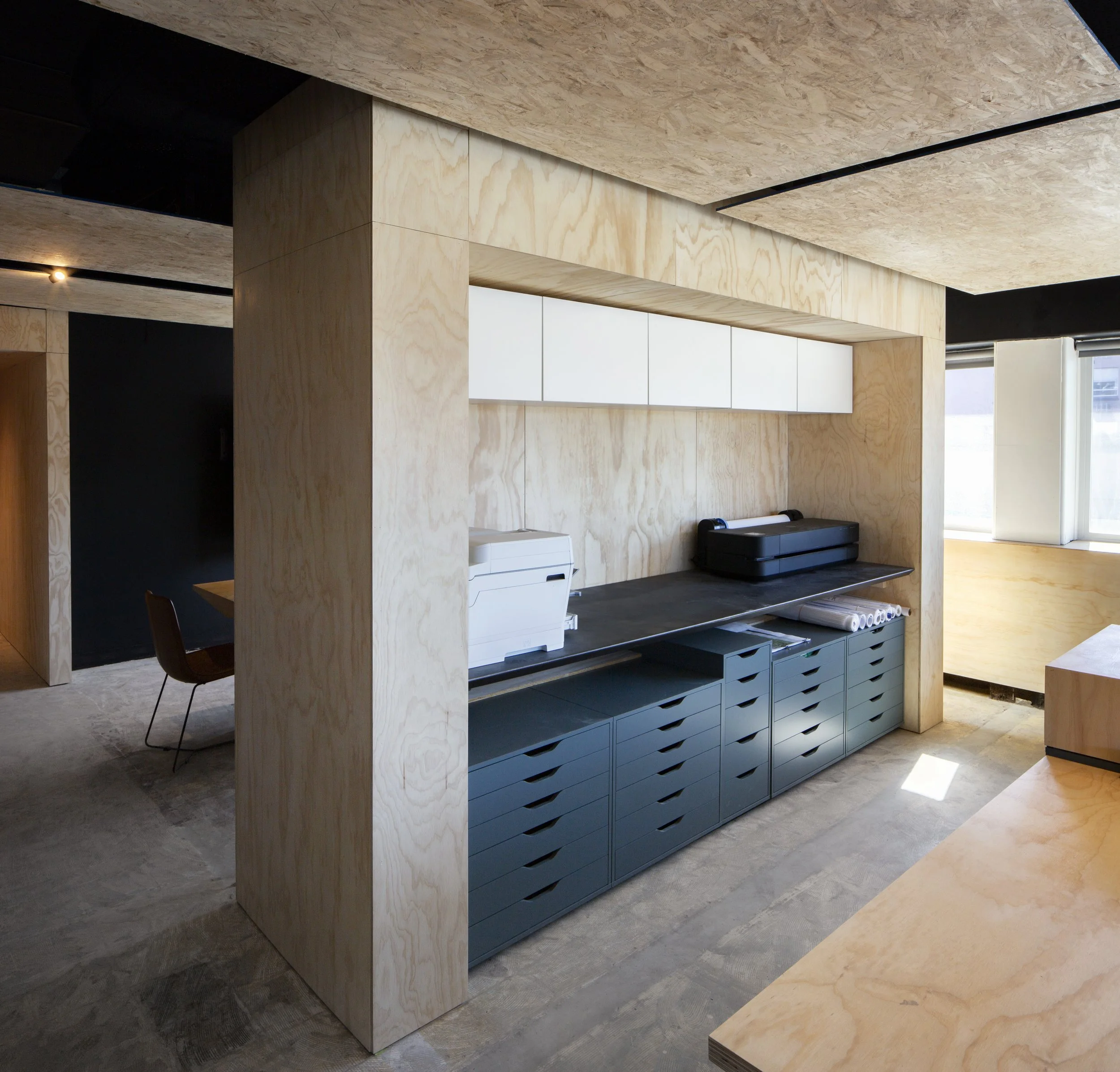 The office is less a renovation than a study in attention: a demonstration of how to accept existing conditions and redirect focus. Here, the void of the original room becomes a container, and the newly crafted elements define both the space and the practice within it.